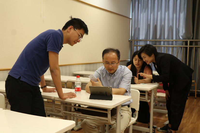 一行6人在周斌校长的陪同下共同参观了武汉分校总部的工作区,并来到位于总部楼下的教学区,体验学而思独有的高科技授课系统。