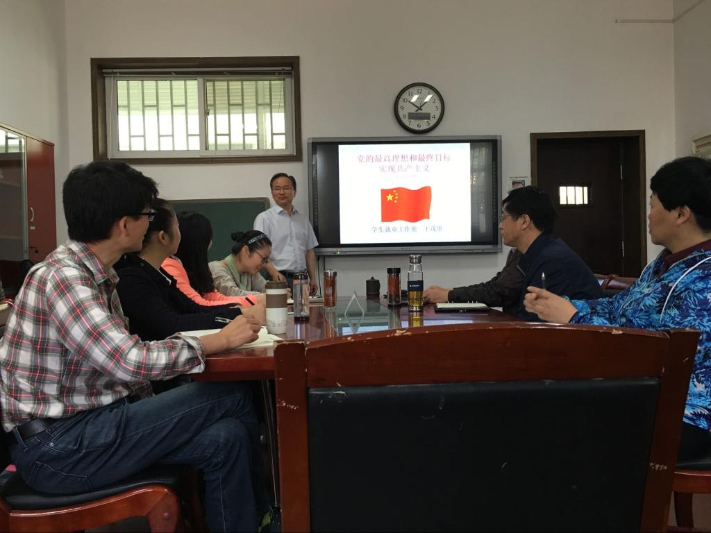 党支部在就业处B110室组织开展“两学一做”学习教育,支部书记、处长王茂胜教授为全处党员主讲党课《党的最高理想和最终目标是实现共产主义》。本次集中学习同时也是就业处支部今年“特色党日”活动之一,为提高“三会一课”党课的针对性实效性,增强支部服务师生的凝聚力战斗力,还从就业工作助理团队中邀请了部分学生党员一同听党课。
