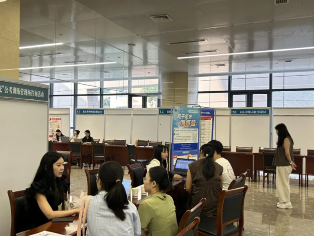 2025届毕业生了解公考信息和强化考试内容,由党委学生工作部就业处主办、中国农村研究院承办的“‘桂子星光’2025届毕业生公考训练营”于9月19日至9月20日在新大学生活动中心就业服务大厅开展了选岗咨询与赠书活动。