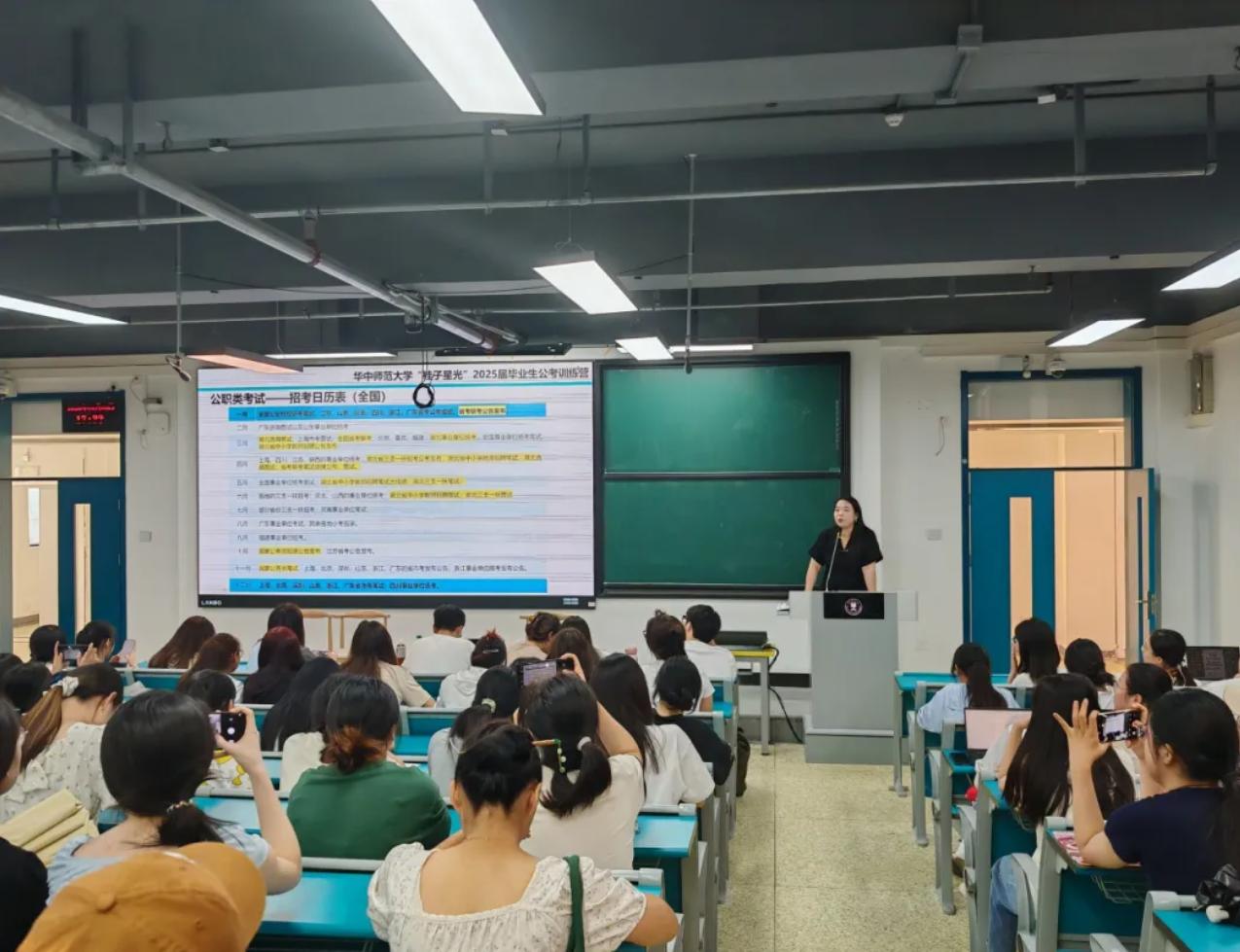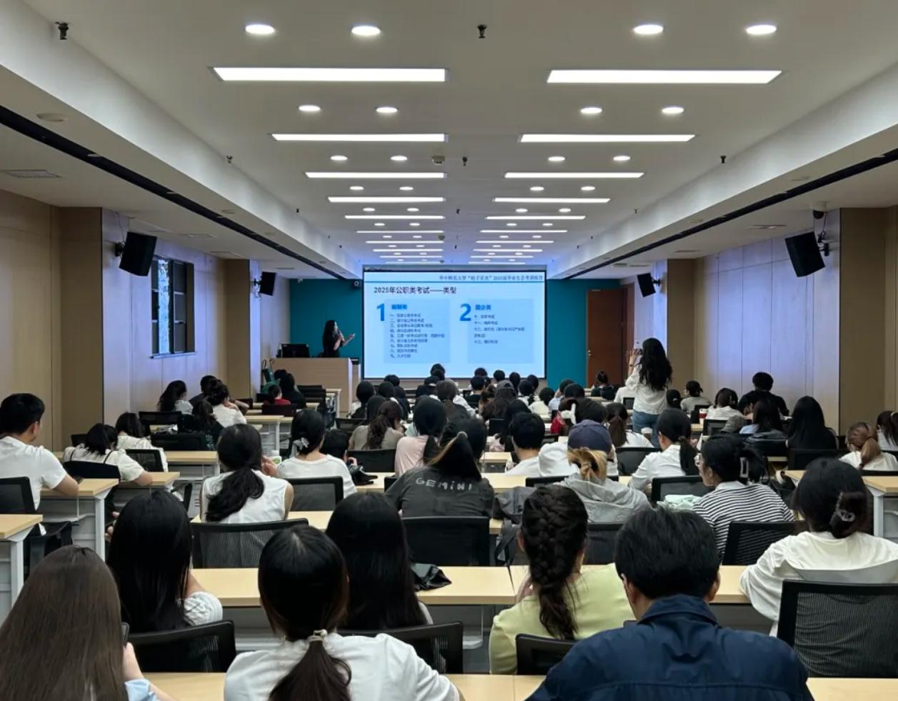 2025届毕业生服务国家发展战略需要赴基层就业,由党委学生工作部就业处主办、中国农村研究院承办的“桂子星光”2025届毕业生公考训练营活动于9月上旬陆续走进公共管理学院、城市与环境科学学院、教育学院和法学院等学院,开展公职类考试政策解读及培训宣讲。