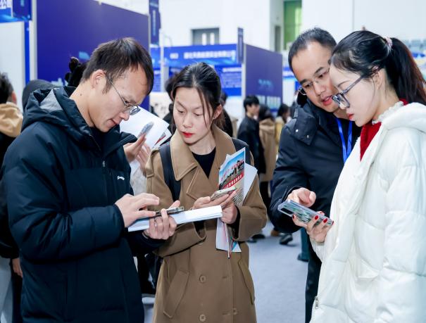 现场气氛热烈,前来咨询应聘的求职者络绎不绝,求职者根据自身的专业、特长和职业规划与用人单位面对面沟通交流,并积极投递简历。