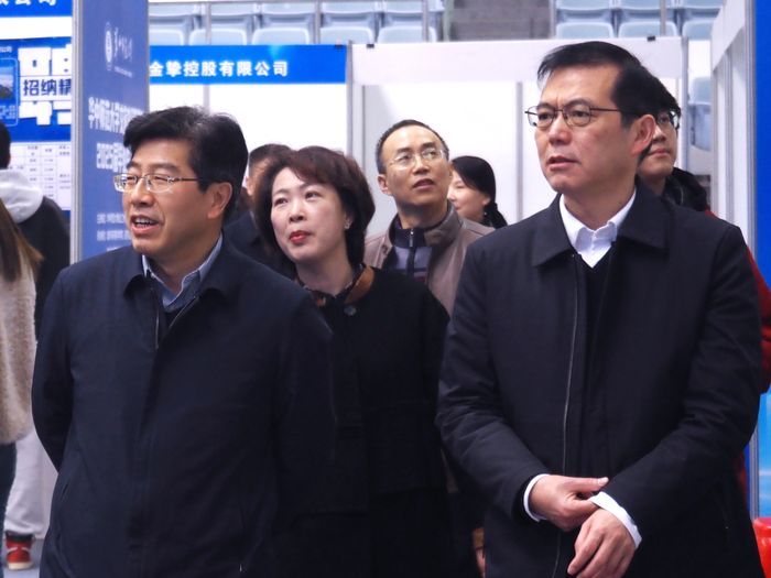 文旅农经管学科2025届毕业生双选会在佑铭体育馆举行。校长彭双阶、校党委副书记陈迪明来到现场,与用人单位和毕业生交流。
