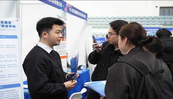 基础教育板块中,武汉经开外国语学校、红安县第一中学、随州市第一中学、广州外国语学校、广水市第一高级中学、广西师范大学附属中学、四川省科学城春蕾学校等多所名校设立展位,与师范专业毕业生就岗位需求、职业发展等展开深入交流。同时,中建海峡、科大讯飞、中建科工、中国人寿、招商银行、新东方等知名企业也带来了丰富的岗位选择,满足了毕业生多元化的职业发展需求。