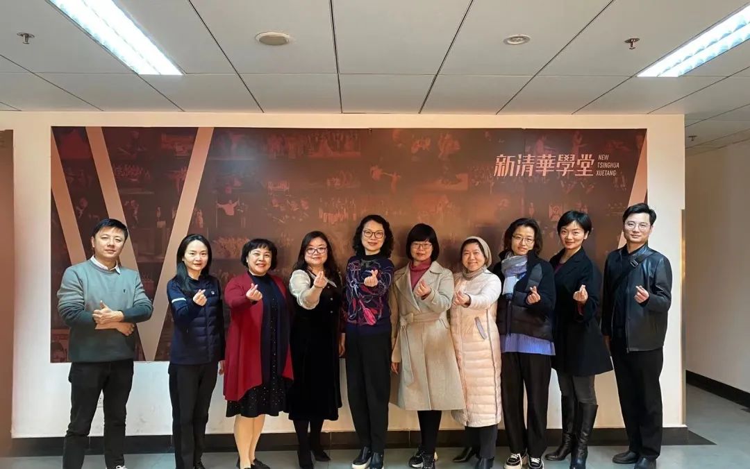 3月7日上午,詹艺虹一行赴清华大学艺术教育中心展开调研交流,与中心副主任肖薇、教学办主任胡新宙等老师进行座谈,会议由校友、青年教师吴妮妮主持,吴妮妮以“春风化雨、润物无声”为题介绍清华大学公共艺术教育的整体情况,双方就艺术教育未来发展方向、高校美育建设等问题进行深入交流。座谈结束后,詹艺虹一行参观蒙民伟楼排练厅、多功能厅和新清华学堂等艺术活动场馆。