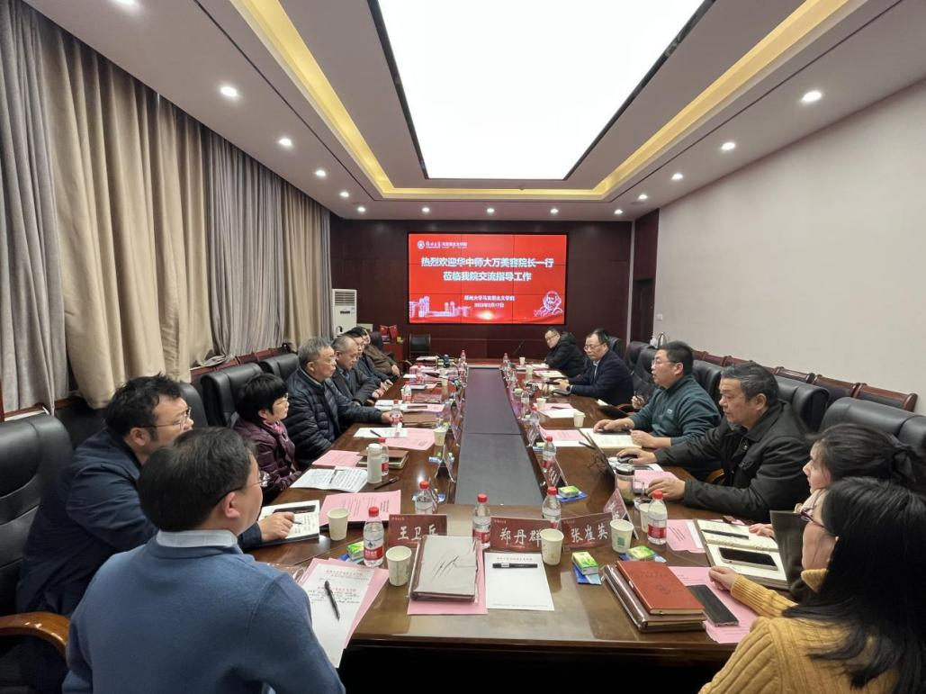 2月16日,院长万美容教授、副院长邵彦涛副教授等赴郑州市教育局、河南大学马克思主义学院、郑州大学马克思主义学院等单位,开展交流活动并走访校友。走访过程中,万院长一行深入调研马院人才培养方案、中学思想政治课教师素质能力要求,为学院修订人才培养方案、改进教育教学工作、完善教学评估体系等提供了重要的参考。