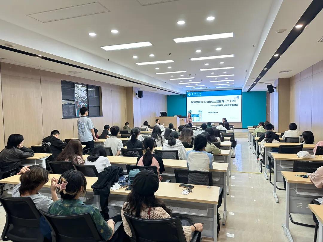 2024年4月14日下午,城环学院在10号楼南楼116教室开展地理科学大类校友面对面活动。本次活动邀请到2018届校友、二十一世纪空间技术应用股份有限公司李思缔,2018届校友、武汉理工大学陶一菡交流分享自己的成长故事,2023级全体非师范学生参加,活动由辅导员刘新星主持。
