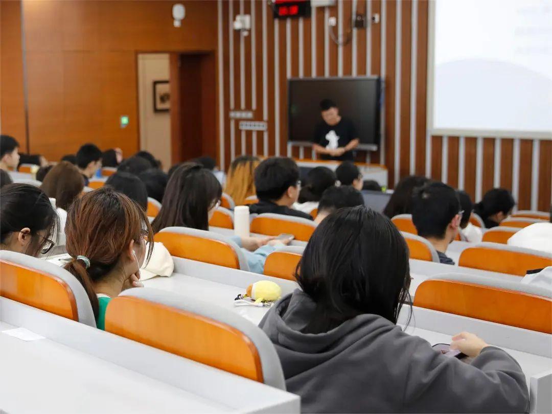 刘宇乐从个人生涯规划的变化过程出发,帮助同学们梳理未来发展方向,明确发展目标。他从前期的简历投递、项目的经验积累、面试的提前准备以及最后信息的确认等方面系统地介绍了求职的全过程,提醒同学们在求职过程中要适时调整求职策略与方向。他着重向同学们强调了简历的撰写与投递,并现场展示了自己的简历排版,分析简历的组成部分。