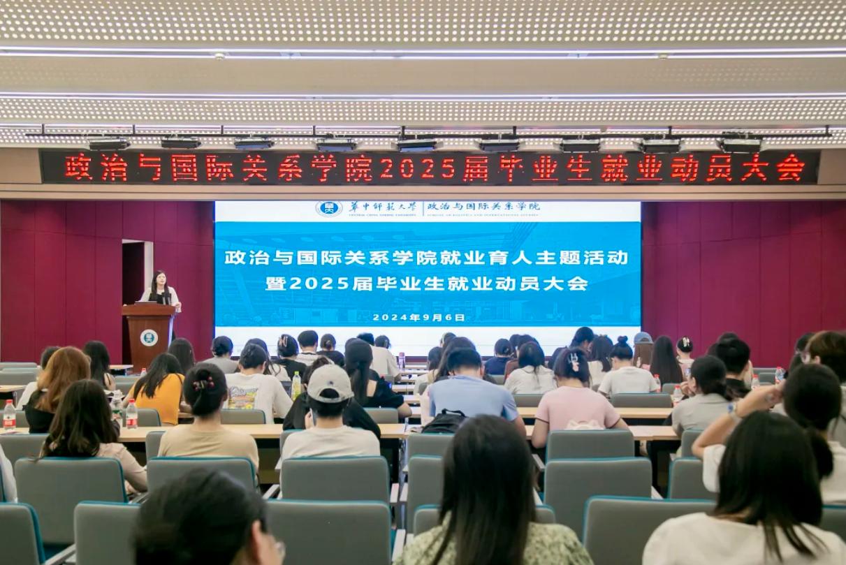 为统筹推进毕业生就业工作,做实做细就业指导服务,促进毕业生高质量充分就业,9月6日,政治与国际关系学院就业育人主题活动暨2025届毕业生就业动员大会在文科科研楼一楼报告厅举行。政治与国际关系学院党委副书记潘广炜、副院长黄辉祥、本研毕业生辅导员骆婉婷、郑泓韬出席,全体2025届政治与国际关系学院毕业生参加会议。此次会议共分为两个阶段,分别由骆婉婷和郑泓韬主持。