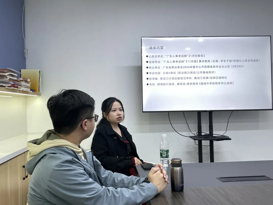 不积跬步,无以至千里;不积小流,无以成江海。为加强港澳台学生之间的交流合作,提高港澳台学生生涯规划意识,有效打通升学就业信息壁垒,11月8日下午,历史文化学院(以下简称“历院”)港澳台生生涯规划经验分享会在国交四栋一站式服务社区举行。本次经验分享会由历院2022届本科毕业生陈祈珍担任主讲人,历院2024届本科毕业生黄少婷担任答疑人。历史文化学院全体港澳台生参与本次分享会。